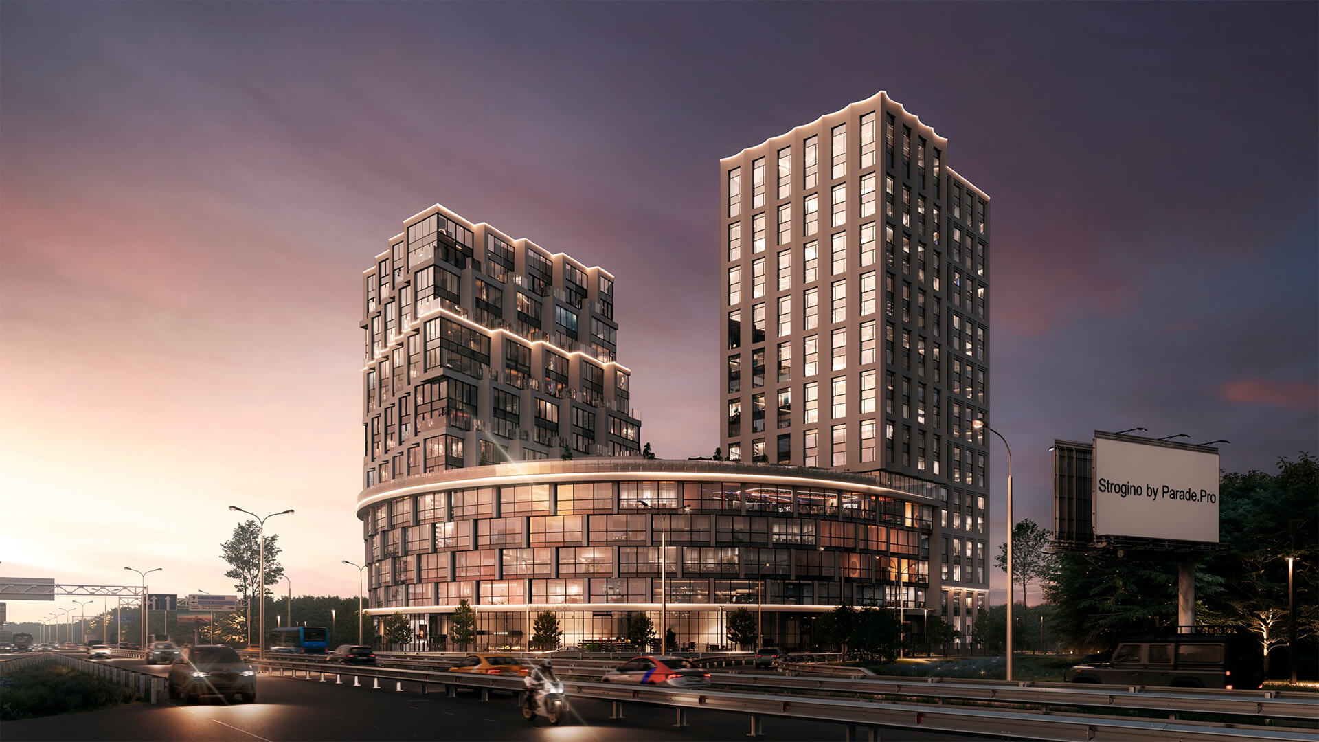 Архитектура бизнес-центра «Сити Строгино» создаёт визуально выразительный и технологичный облик, где современность фасадов, панорамное остекление и вариативность этажности сочетаются с принципами эргономики и функциональности. Фасады с высоким процентом стекла обеспечивают максимальное проникновение света и открывают виды на город и реку, создавая ощущение лёгкости и прозрачности пространства. Высотность зданий варьируется от 5 до 20 этажей, что позволяет гибко адаптировать планировки под различные сценарии использования: от компактных кабинетов до штаб-офиса крупной компании.